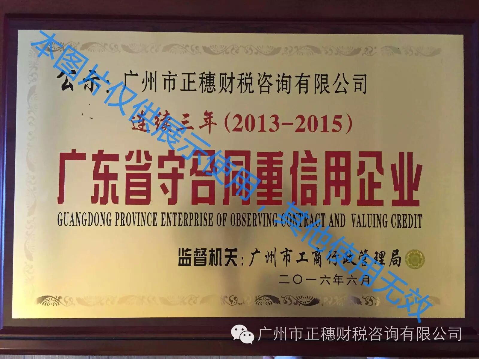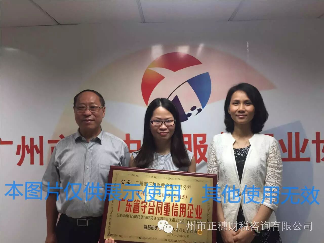 热烈祝贺广州市正穗财税咨询有限公司连续三年被评为“广东省守合同重信用企业”