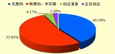 不过,在参与调查的应届毕业生中,仅有6.58%的大学毕业生正在创业或准备创业,而有创业意愿但未实施的则超过半数。这表明应届毕业生创业意愿很高,落地项目却不多。